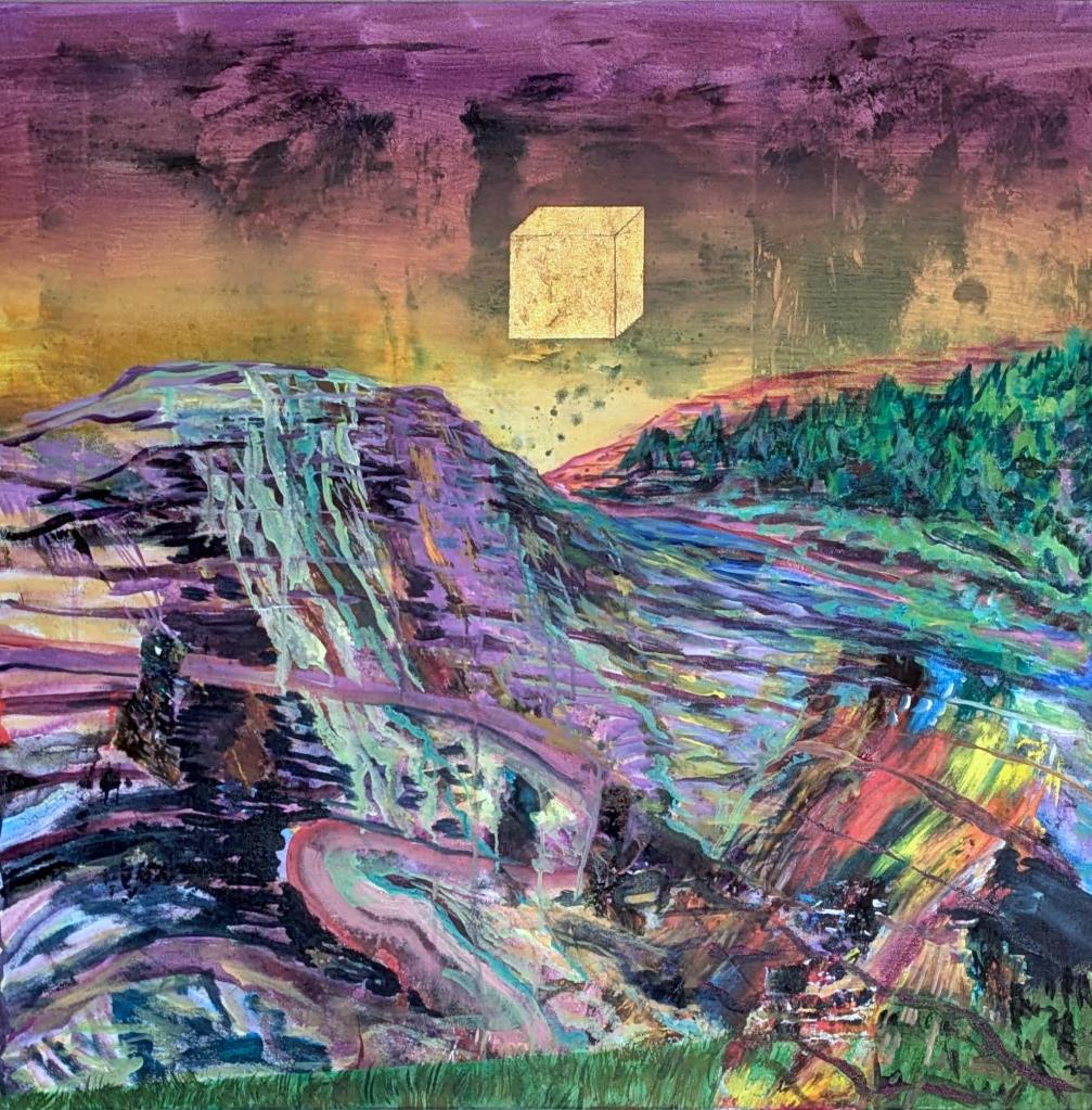 The first painting is part of an ongoing series about open-pit mines, which acknowledges the extractive practices and mindset that are responsible for climate change and a desire to transform the foundation of this paradigm.